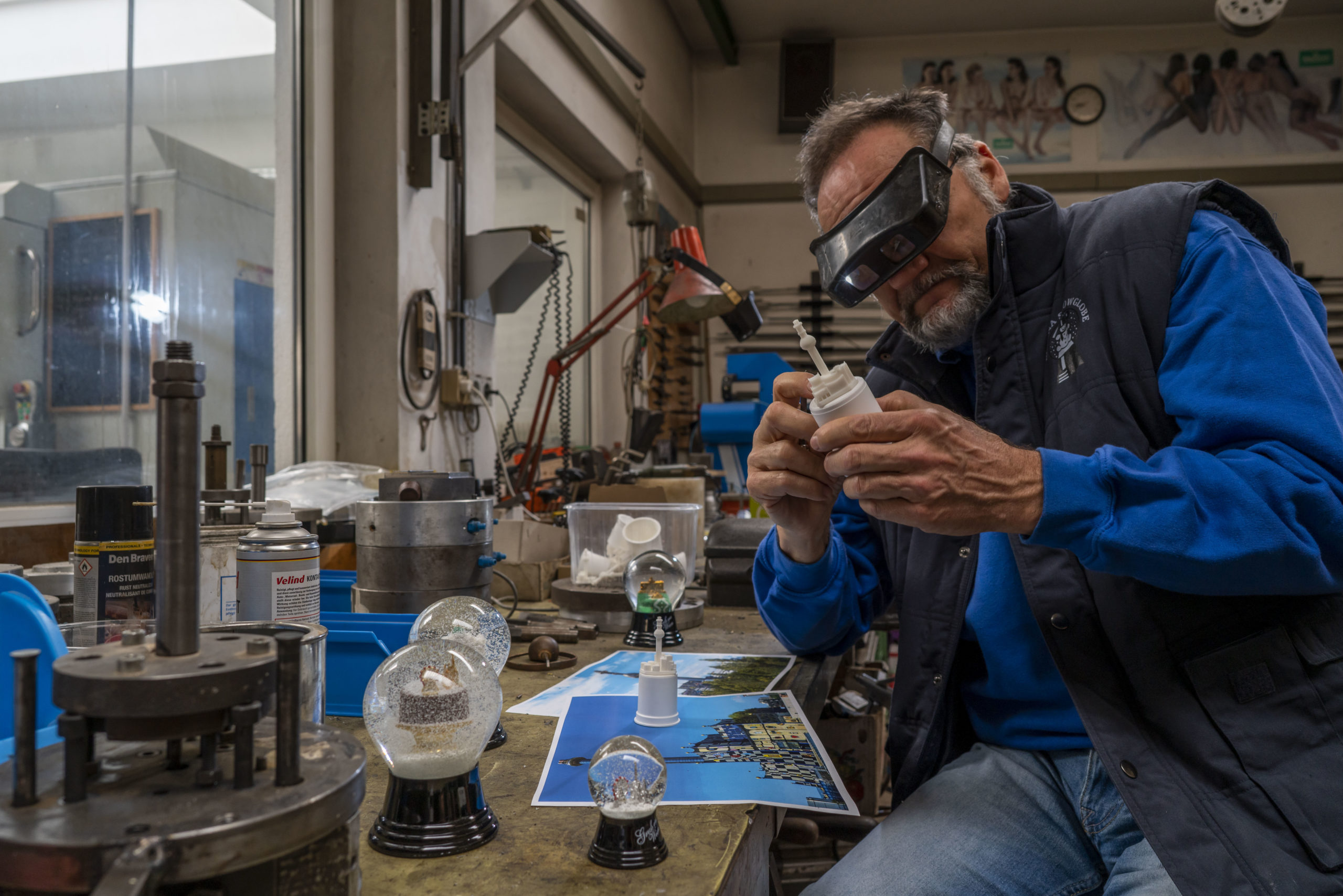 Die Handbemalung wird heute, wie damals eingesetzt. Selbst bei der Produktion von so etwas Traditionellem wie der Schneekugel spielen also technische Neuerungen eine Rolle. Nach dem Zweiten Weltkrieg investiert Erwin II. in eine Kunststofftechnik, die das Löten der Teile aufhob und es durch ein Spritzgussverfahren ersetzte.